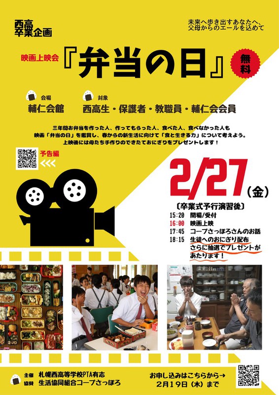 【西高からお知らせ】令和7年度卒業企画「弁当の日」上映会のご案内