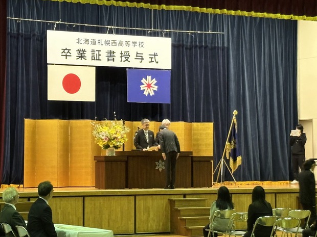 静寂に包まれた夜の学び舎に祝福の拍手が響くなか、札幌西高校定時制課程では、家族や教職員、在校生に見守られ、